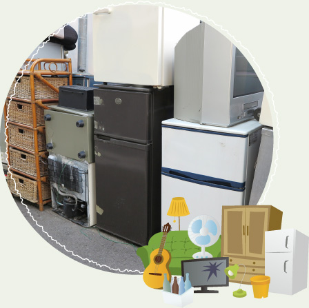家具や家電をはじめ、不用品1点からお住まい丸ごとのお片付けなど、不用品回収のことなら当社にご相談ください。